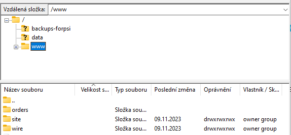 Script si nahráme na hosting. Môžeme to urobiť napríklad pomocou programu FileZilla. Nahráme priečinok Orders do priečinka /www.