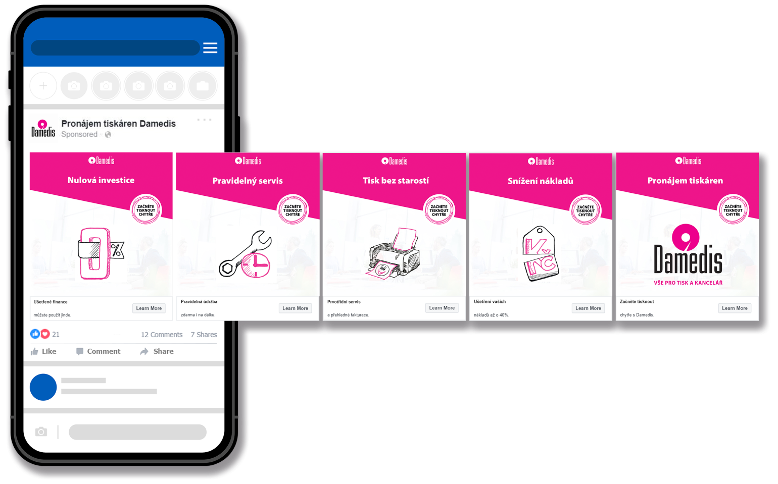 Firma Damedis se specializuje na maloobchodní a velkoobchodní prodej kancelářských technik a potřeb v Čechách a na Slovensku. Firma Damedis nás oslovila s prosbou o pomoc při propagaci jejich B2B služby pronájmu tiskárny na Českém trhu.
